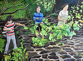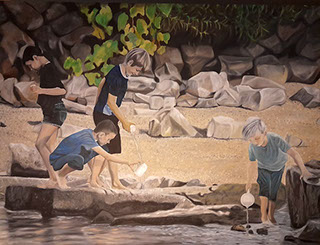 Jugend am Bach ( Youth at the creek ) Öl a. Leinwand 210 X 160 cm - 2022